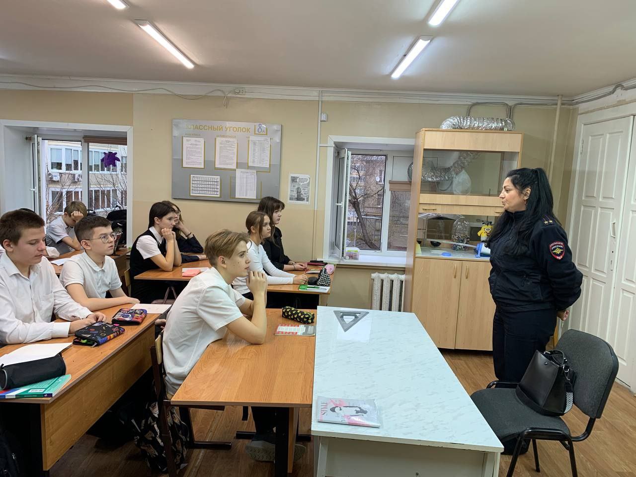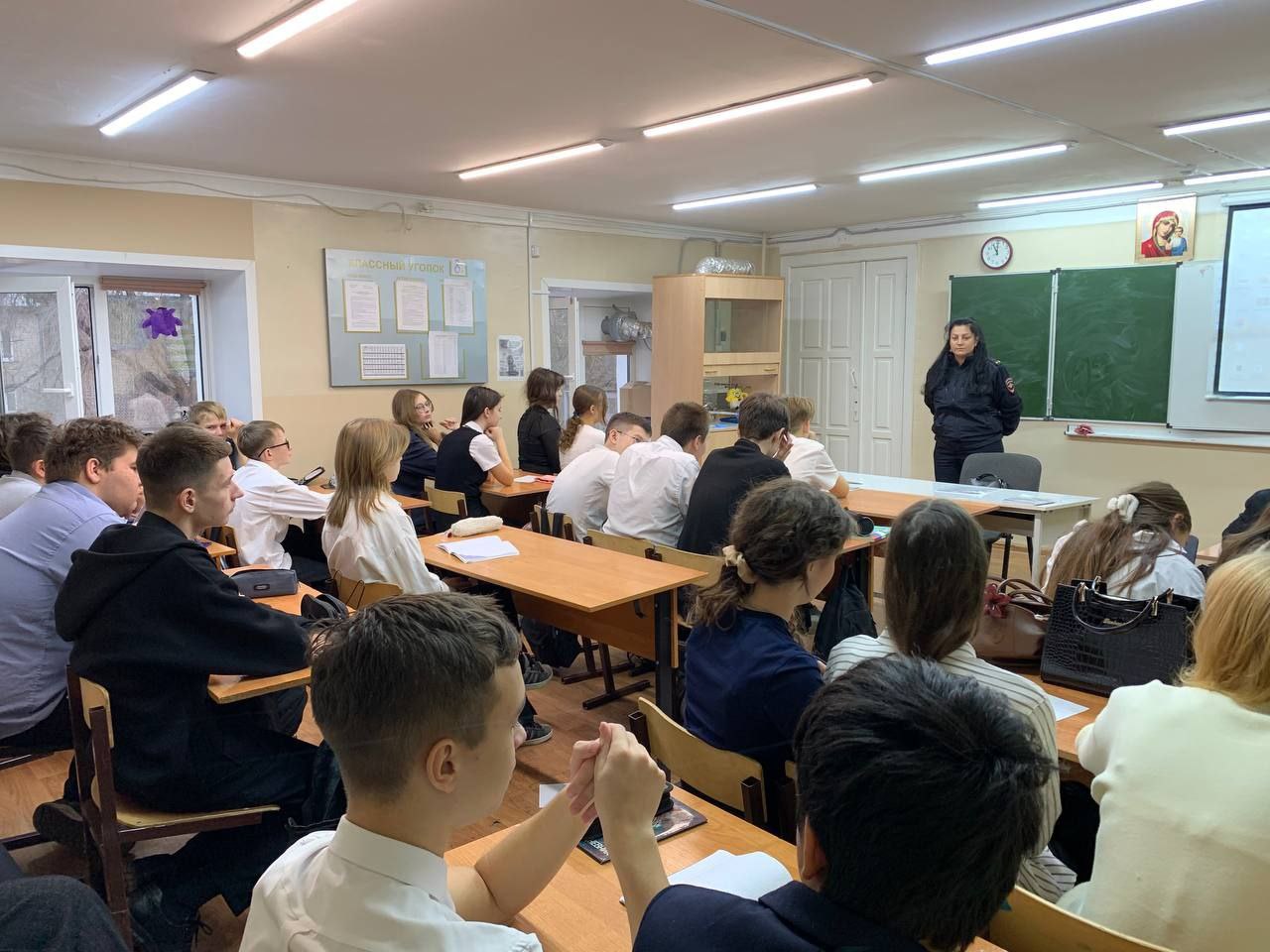 17 ноября ученики старших классов присутствовали на встречах с начальником ОУУП и ПДН отдела № 1 в составе УМВД России по г. Саратову подполковником полиции Натальей Борисовной Беккер.