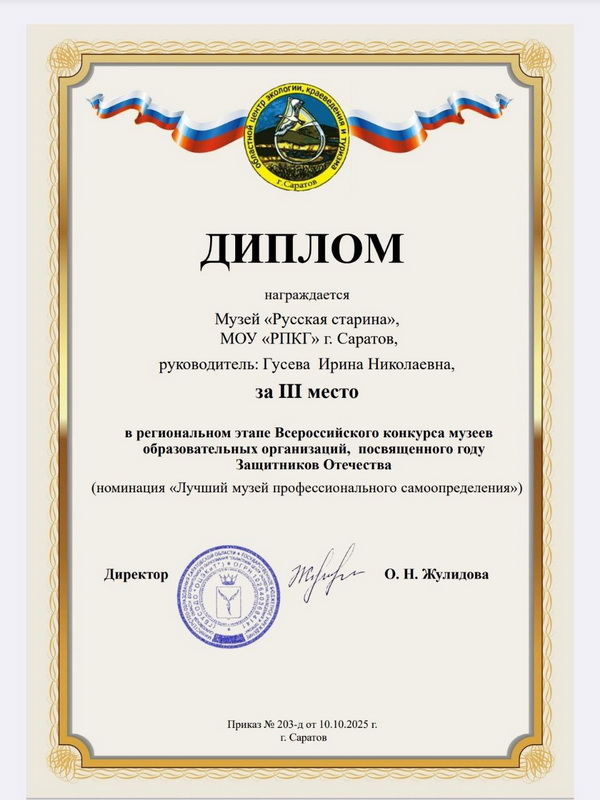 В октябре государственным бюджетным учреждением Саратовской области дополнительного образования «Областной центр экологии, краеведения и туризма» проводился региональный этап Всероссийского конкурса музеев образовательных организаций, посвященный Году защитников Отечества.